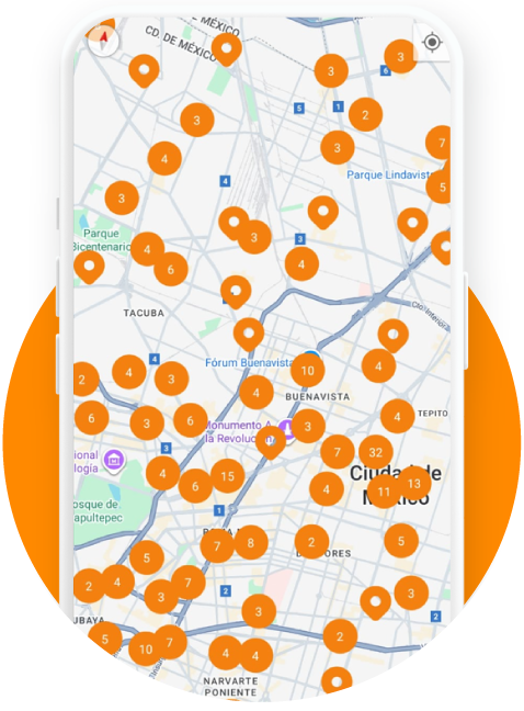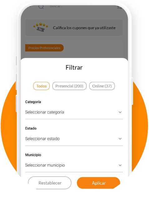 Localiza comercios cercanos y filtra por tipo de beneficio en tu ciudad.